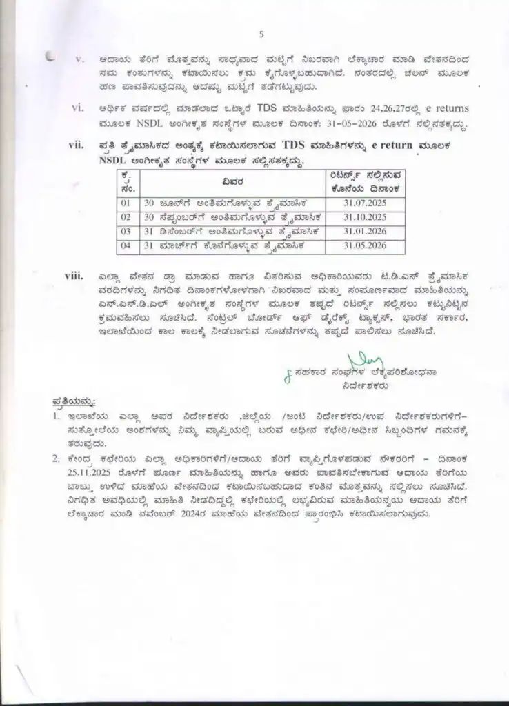 ಆದಾಯ ತೆರಿಗೆ ಪಾವತಿ ಮಾಡುವ ಕುರಿತು ರಾಜ್ಯ ಸರ್ಕಾರಿ’ ನೌಕರರೇ ಗಮನಿಸಿ ಆದಾಯ ತೆರಿಗೆ ಪಾವತಿ’ ಕುರಿತು ಇಲ್ಲಿದೆ ಸಂಪೂರ್ಣ ಮಾಹಿತಿ ಹೌದು 2025-26ನೇ ಆರ್ಥಿಕ ವರ್ಷದಲ್ಲಿ ಸರ್ಕಾರಿ ನೌಕರರು ವೇತನದ ಆದಾಯದ ಮೇಲೆ ಪಾವತಿಸ ಬೇಕಾಗುವ ತೆರಿಗೆಯನ್ನು ವೇತನ ಆದಾಯ ಮೂಲದಿಂದ ವಸೂಲು ಮಾಡುವ ಬಗ್ಗೆ ಸೂಚನೆಗಳನ್ನ ನೀಡಿದೆ.